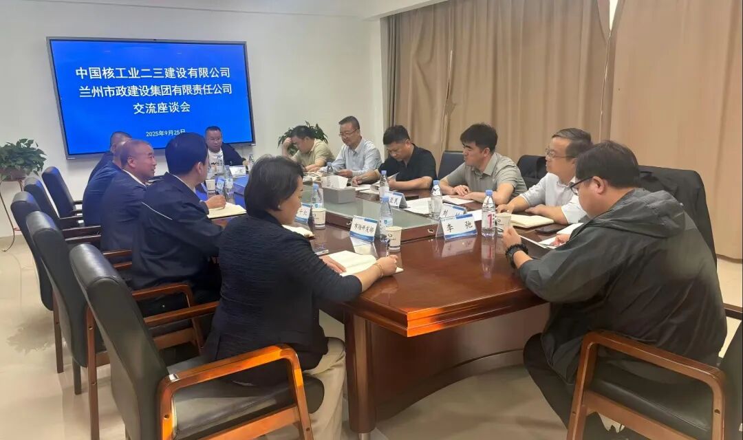 9月25日下午,中国核工业二三建设有限公司副总经理施发永一行来访兰州市政建设集团,与公司党委副书记、总经理王守武进行了座谈交流。公司党委委员、副总经理何志高,党委委员、副总经理程千红,副总经理魏文军及总部相关部门负责人参与座谈。