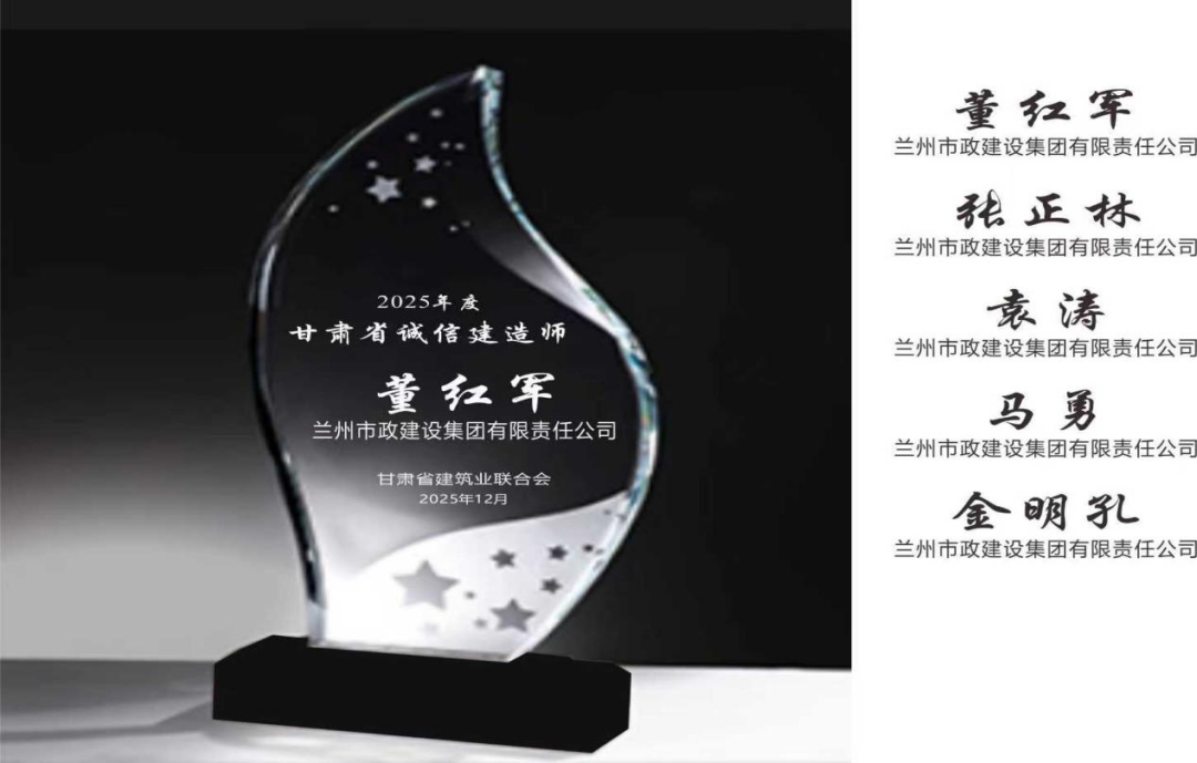 近日,甘肃省建筑业联合会公布了2025年甘肃省建设工程文明工地、绿色建造施工水平评价合格项目及省级诚信建造师评选结果,兰州市政建设集团7项工程,5名员工获评奖项。